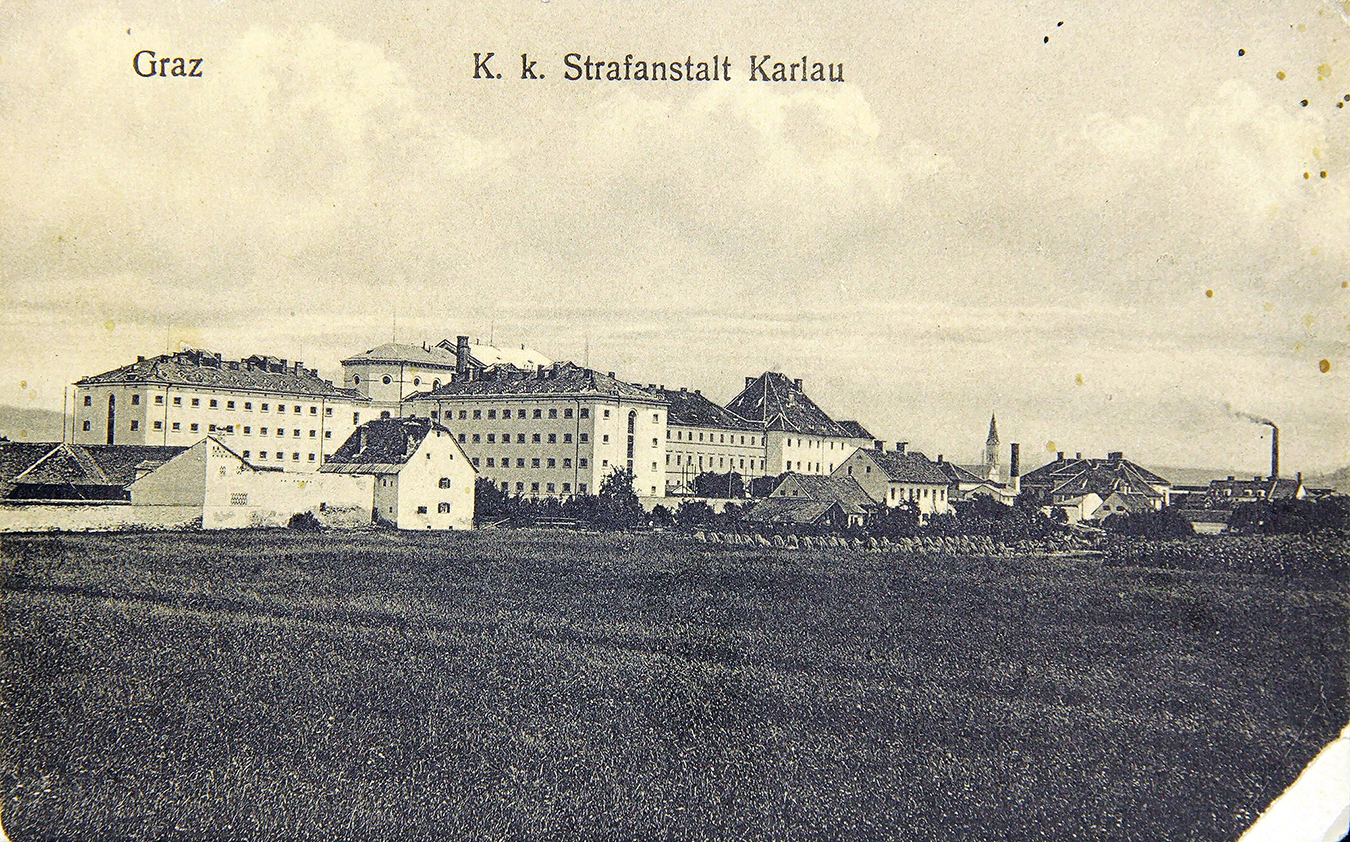 Figure 1. A postcard photograph of Karlau Prison from 1911, by Anton Schlauer (Graz, Verlag). Source: University of Graz (https://gams.uni-graz.at/o:gm.6237). CC BY-SA 3.0 AT.